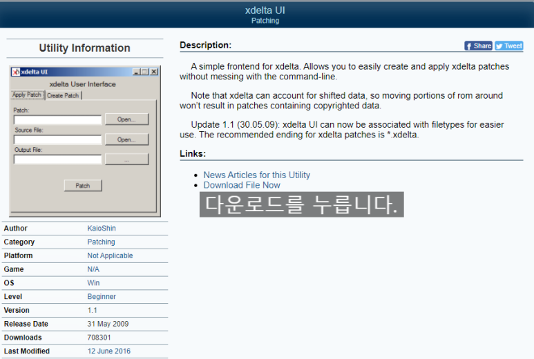 이 패치파일을 적용하기 위해서는 패치 프로그램과