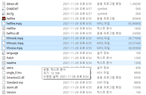 그럼 자동으로 받아졌던 fonts.mpq와 함께 총 6개의 MPA파일이 있습니다.