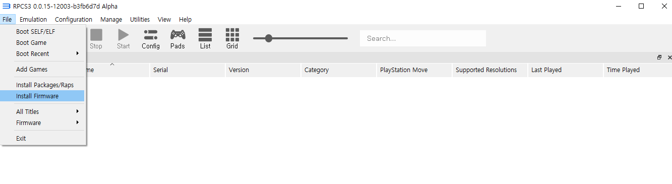 실행이 되면 file에 install firmware를 눌러서 아까 다운받은 PS3UPDAT.PUP를 선택합니다.