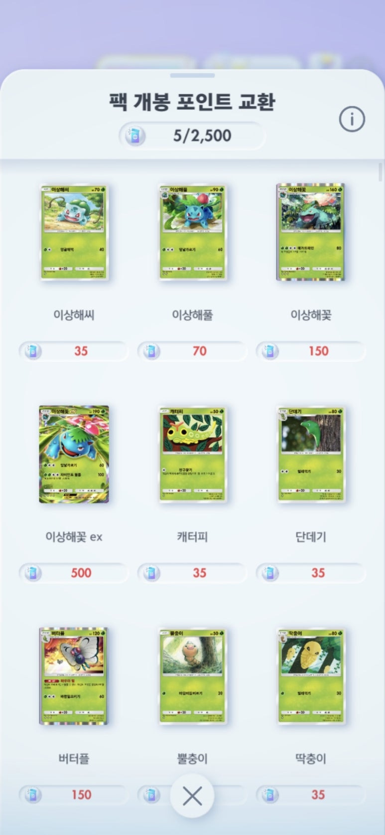 애매하게 안나오는 카드는 포인트 교환소에서 교환하는 것도 좋습니다. 500포인트를 모아서 좋은 카드로 교환하는 것도 중요하지만 애매하게 파이리도 있고 리자몽도 있는데 리자드가 안나와서 덱을 못쓴다면 과감하게 여기서 리자드를 교환해주시는게 더 빠르게 덱을 구성할 수 있는 길입니다.